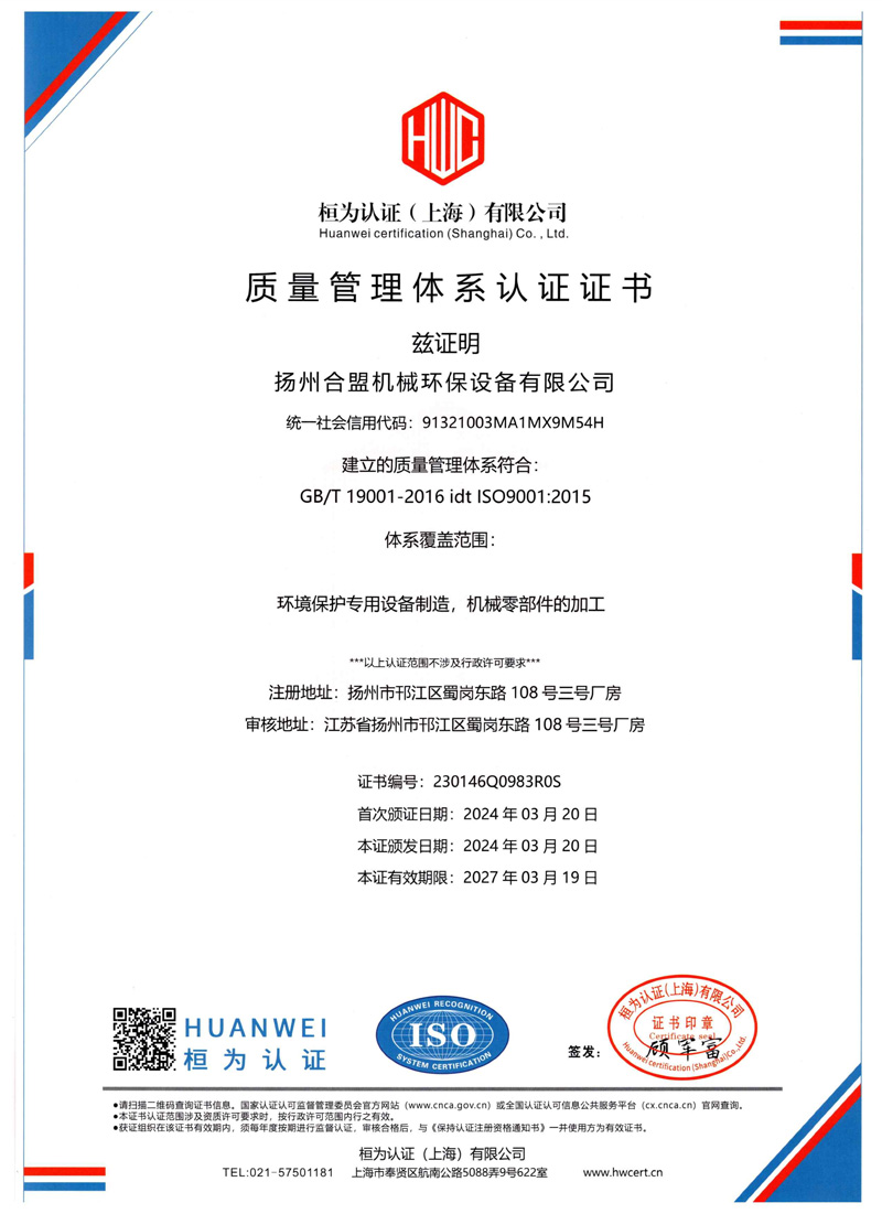 扬州合盟机械环保设备有限公司坐落于风景秀丽的历史名城一扬州,是集产品销售、技术研发、生产制造、工程安装、调试服务为一体的环保企业。公司涉及的产品包括叠螺脱水机、预浓缩叠螺脱水机、集成叠螺脱水系统、带式脱水机、加药溶药系统、输送压榨机、格栅过滤设备、刮 吸泥机、砂水分离机和溶气气浮设备等。产品广泛用于市政污水、石油化工、食品饮料、养殖屠宰、油脂淀粉、钢铁冶金、纺织印染、电力和造纸等 行业。秉持“以质......